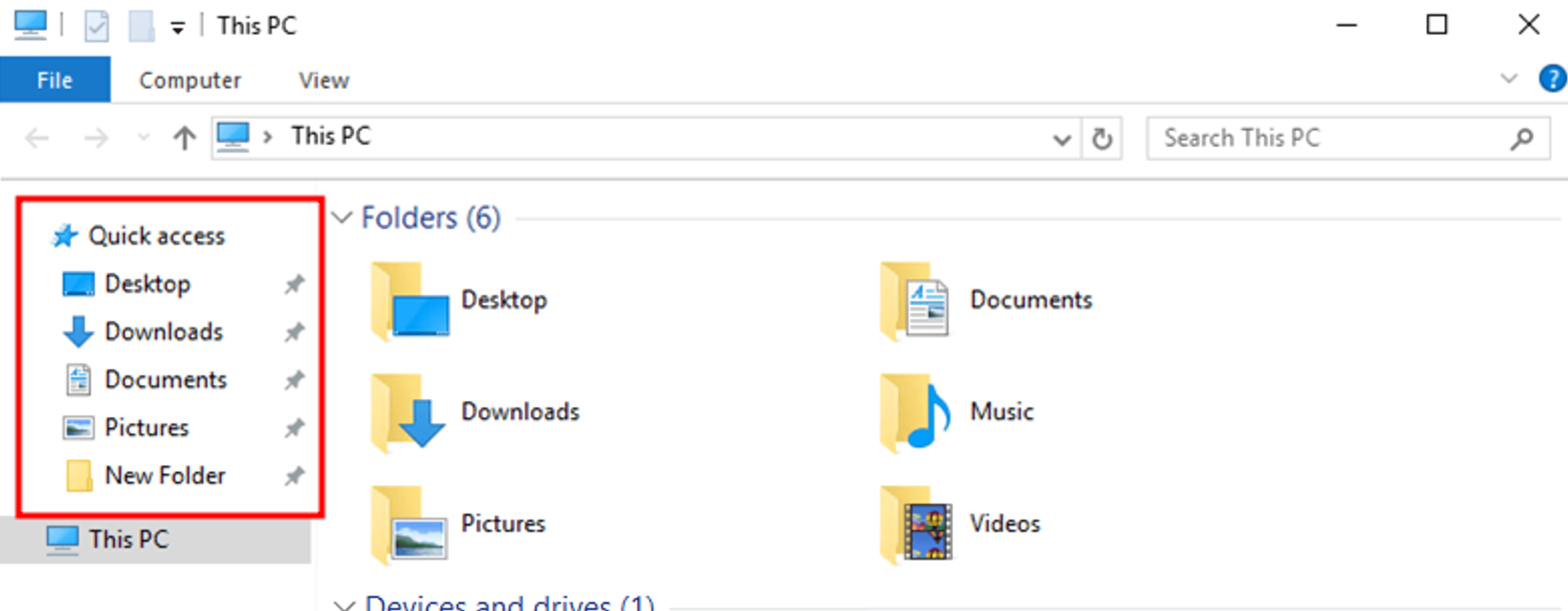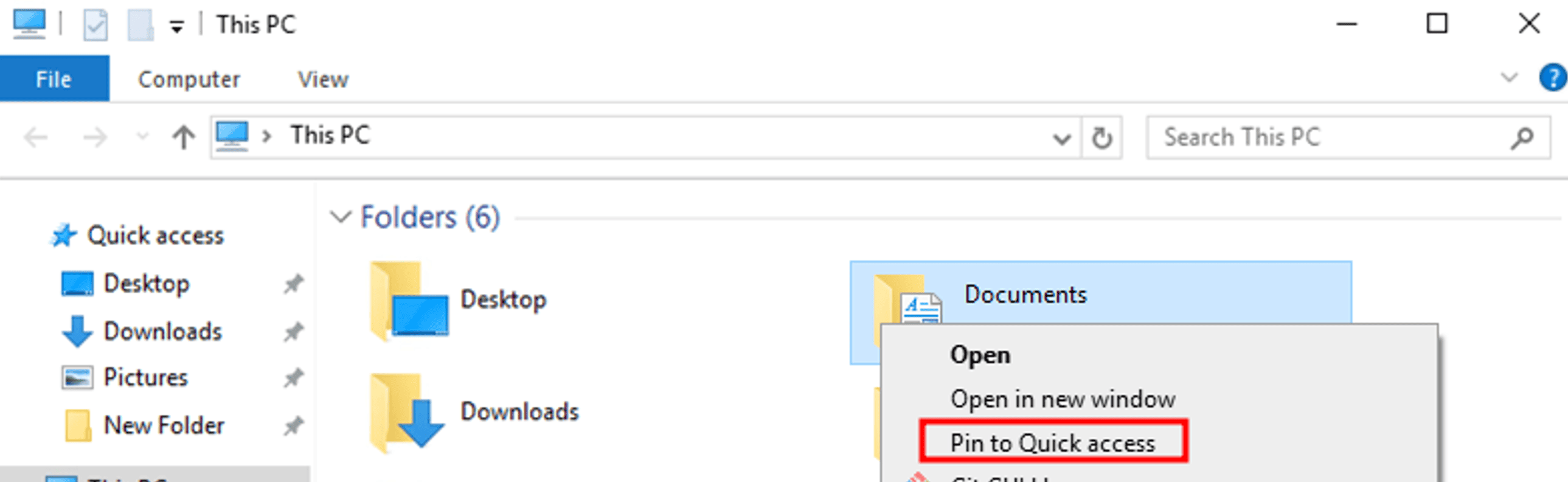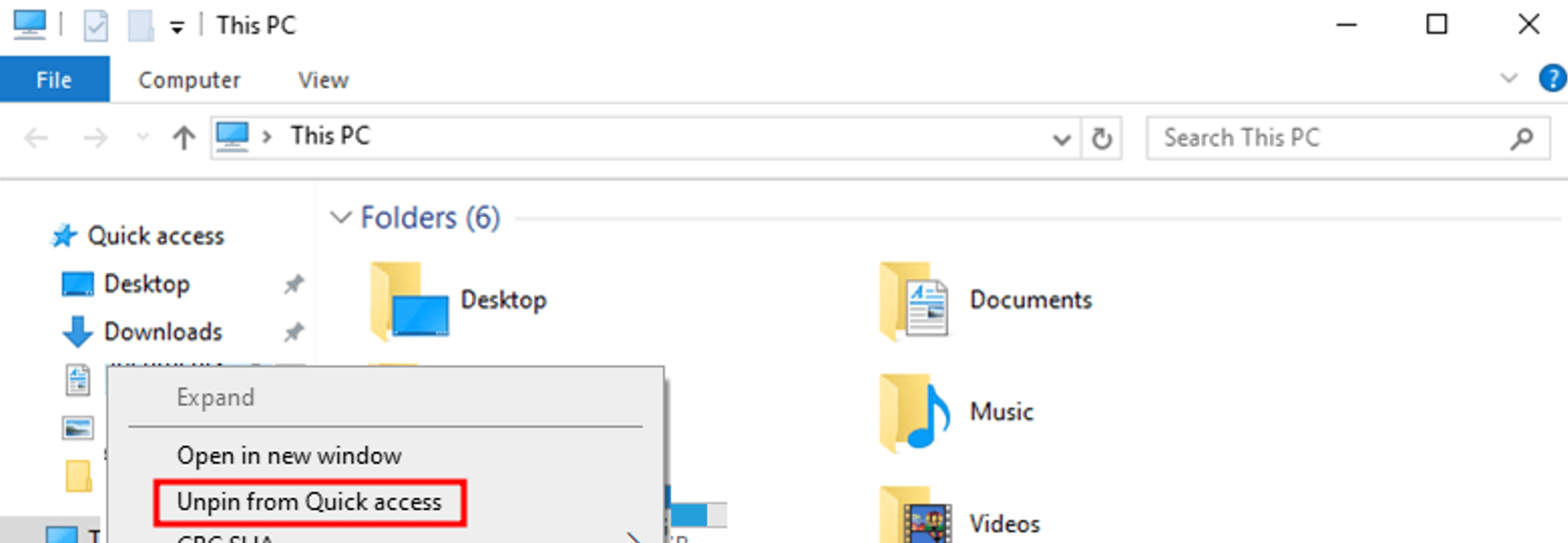 If the user wants to remove a folder in Quick access, right-click it and select Unpin from Quick access.