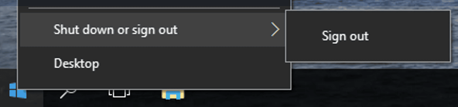 Right-Click on the Windows Icon at the bottom left corner and click Sign Out: