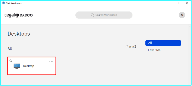 Citrix Workspace client will launch with available Desktops (selection may differ from picture, based on Customer’s setup).