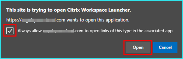 If Detect Workspace was selected, a pop-up message will appear as shown below. Check the checkbox and press Open: